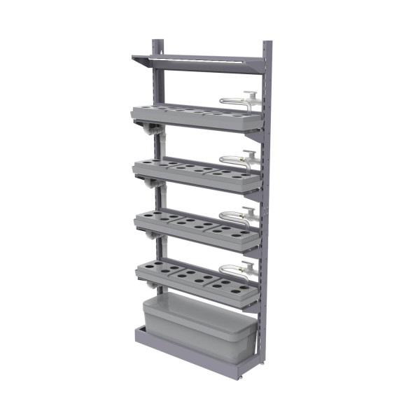 Стеллаж узкий с лотками для гидропоники со встроенной ёмкостью, высота 1,8м